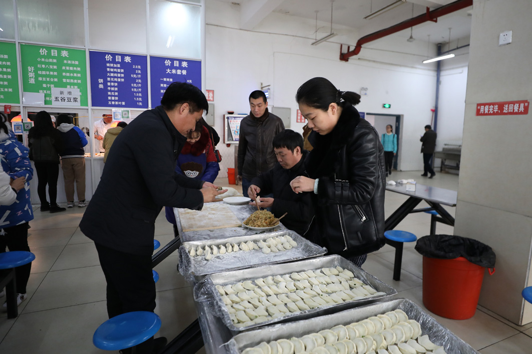 冬至又称冬节、交冬,它即是二十四节气之一,也是中国的一个传统节日。12月22日中午,学院一号餐厅一楼欢声笑语,气氛祥和,学院领导李文山、刘道衔、高如民、王建国、王天仕、王艳以及学院各部门、各分院负责同志在此与师生们共同擀面皮、包饺子、话家常、度佳节。