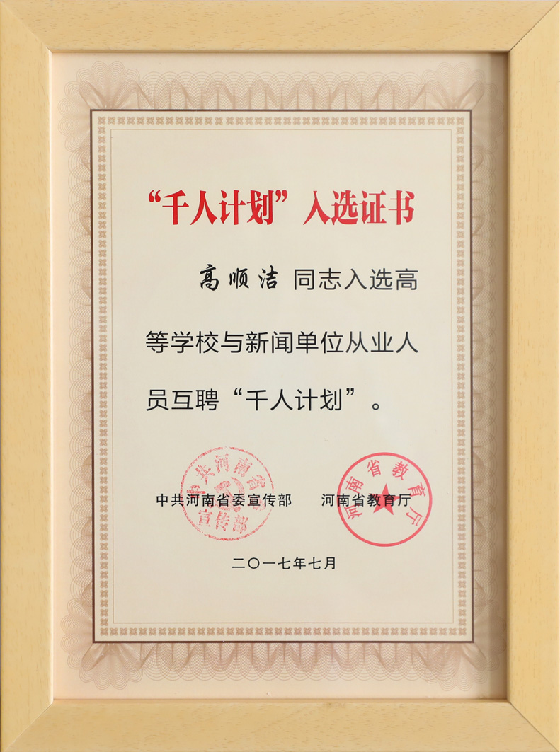 据悉,在2017年7月,学院教师高顺洁顺利完成2016年高等学校与新闻单位从业人员互聘“千人计划”挂职锻炼工作,获得了《高校与新闻单位从业人员互聘“千人计划”入选证书》。