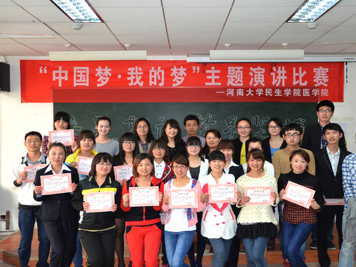 2013年4月16日下午,医学分院在金明综合楼5301教室内举办主题为“中国梦,我的梦”演讲比赛。医学分院陶丽、黄俊丽、张砚、王珂、赵师行、闫彪等辅导员老师担任评委。