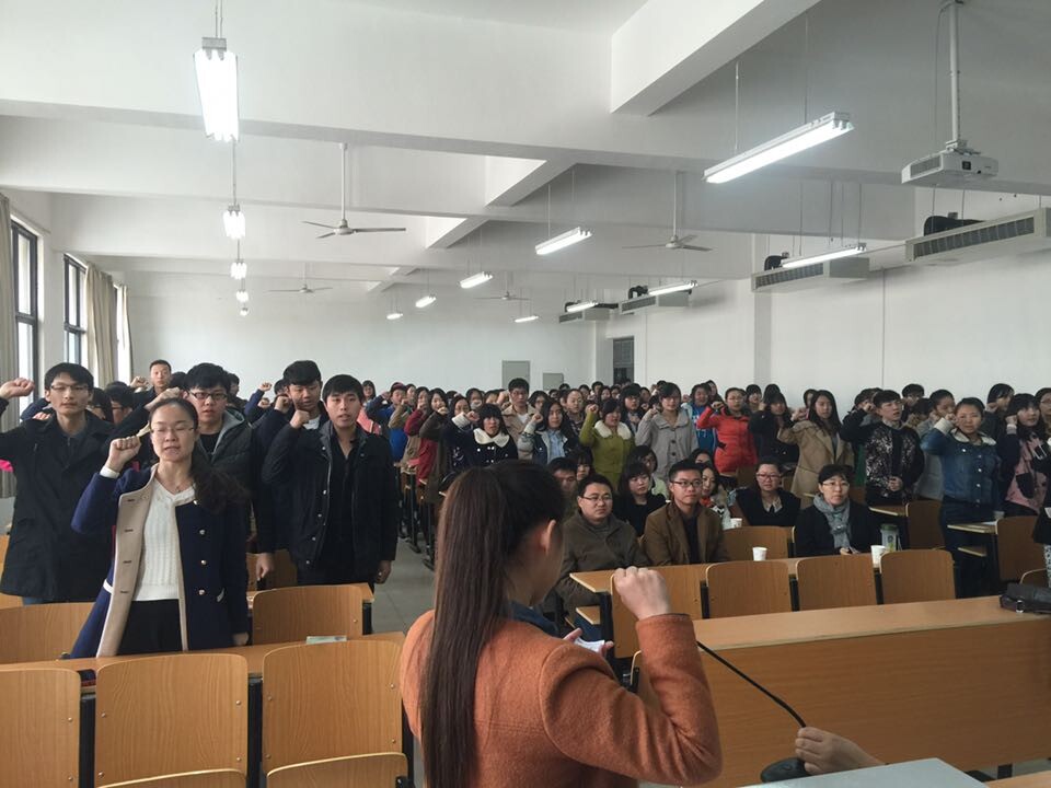 李臻宣布了商学院团总支、学生会干部名单,王潘作为学生干部代表作了发言,团总支、学生会全体成员进行了就职宣誓。