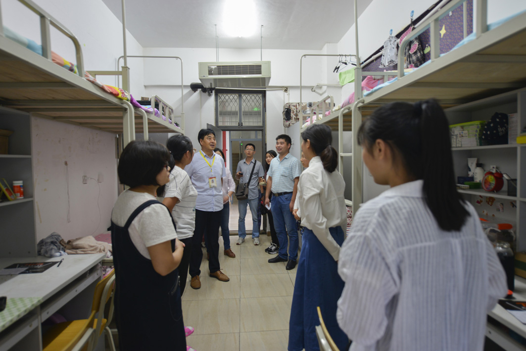 领导们每到一处都与新生亲切交流,都关切询问同学们“来自哪里?”“是否能够适应新环境?”“是否满意学院的住宿条件?”……并与同学们面对面交谈,耐心引导大家尽快适应大学生活,让大家感受到来自学院的关心和家一般的温暖。