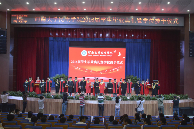 当日上午8时,河南大学民生学院新启用的大礼堂内,乐声欢奏,灯壁辉煌,2016届学生毕业典礼暨学位授予仪式在这里隆重举行。民生学院院长、院学位委员会主席李文山,党委书记魏剑,常务副书记、纪委书记刘道衔,常务副院长、院学位委员会副主席高如民,党委副书记王建国,副院长张耀华、张国梁、王天仕、段廷良、王艳,学院各部门、各分院负责同志,全体辅导员、教师代表及2016届毕业生参加典礼。