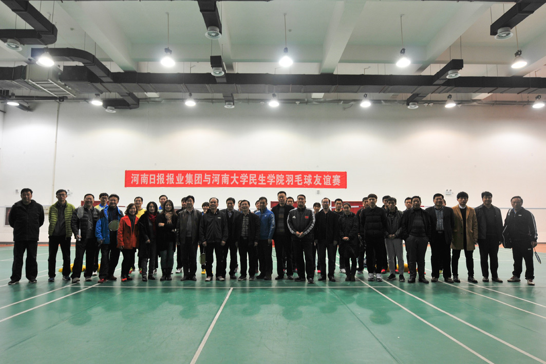 为落实学院董事会领导相关指示精神,弘扬体育运动精神,增强双方职工身体素质,12月1日下午,河南日报报业集团党委委员、副总编辑、学院董事会董事王国庆,大河网络传媒集团有限公司总编辑孟磊等领导带领集团相关部门同志到学院视察工作,并与学院教职工在体育馆一楼进行了羽毛球友谊赛。