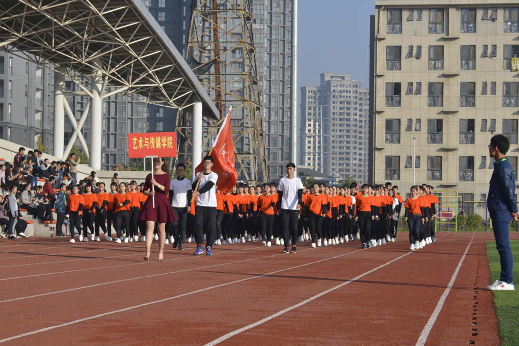伴随着激昂奋进的《运动员行曲》,国旗护卫队和各分院方阵依次入场。