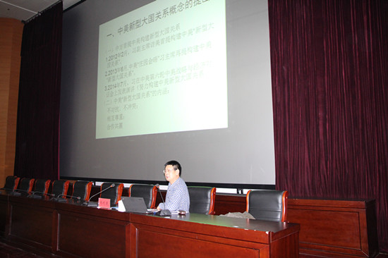 10月15日下午,河南大学党委在金明校区图书馆一楼报告厅举行中心组学习扩大会议,邀请中国现代国际关系研究院研究员、《现代国际关系》主编——林利民博士作了题为《构建“中美新型大国关系”:现状与前景》的辅导报告。河南大学在校校领导,党委、纪委委员,全体中层干部及省市厅级干部研修班、省高校中青年干部培训班的各位学员聆听了报告,报告会由河南大学党委书记关爱和主持。