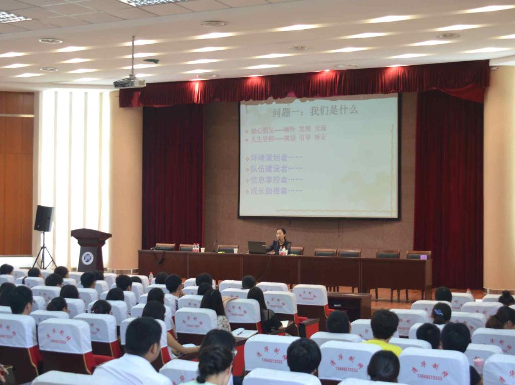 刘婷副教授从辅导员的内涵和外延入手,介绍了高校辅导员在学生全方位教育工作中的重要地位。她结合辅导员工作中的实例,重点阐述了当前大学生事务管理的特点、存在的问题及解决办法,对日常工作中存在的困惑,特别是思想教育与学生事务管理之间的关系、辅导员的定位和工作重心等方面提出了自己的看法和独到的见解。她建议辅导员们对自己的性格、技能、心态、信念、把握机遇的能力等方面进行剖析,给自己一个科学职业定位,认真进行职业生涯规划,确定自己的职业生涯目标,制定行动计划和行动指南,一点一滴积累经验、能力和资源,朝着辅导员职业化、专家化的方向发展。