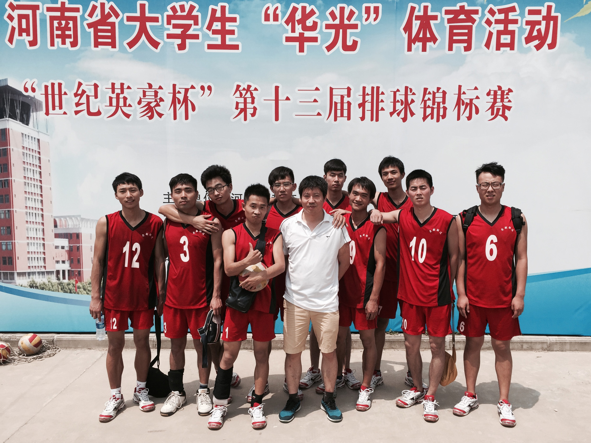 2015年7月12日至16日,由河南省教育厅主办、河南省学生体育总会协办的河南省大学生“华光”体育活动第十三届排球锦标赛在洛阳师范学院举行。我院男子排球队经过精心准备,在基础学院负责老师的带领下出征本次赛事。