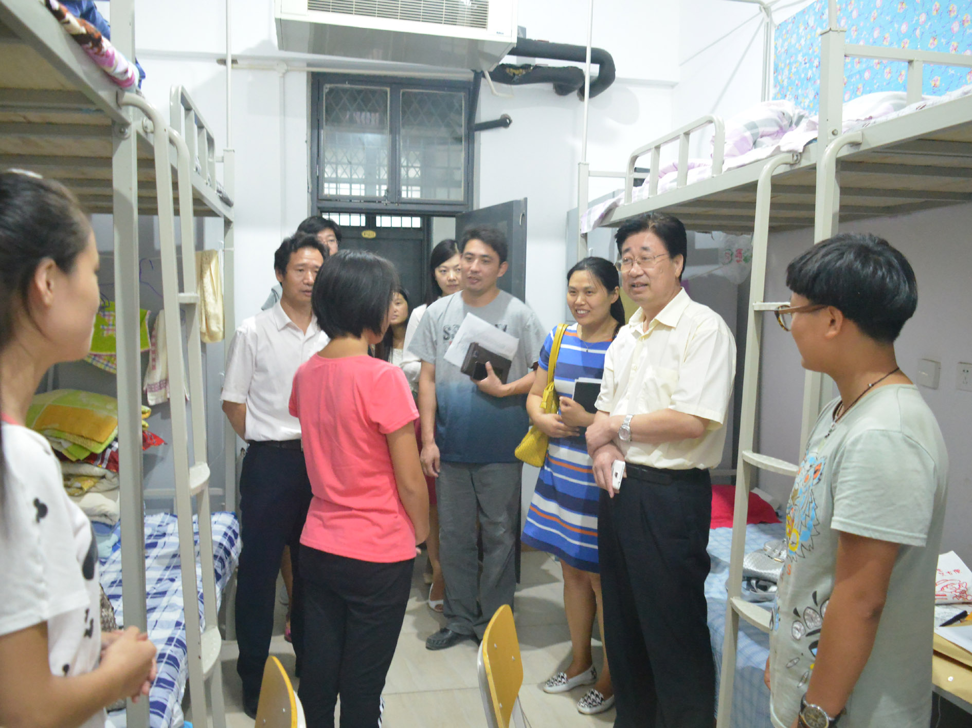 9月3日晚,学院院长李文山、党委书记魏剑、常务副书记刘道衔、常务副院长高如民、副书记王建国、副院长张耀华、张国梁、王天仕、段廷良、王艳与各分院负责人及新生辅导员一起,分别来到学生宿舍看望2015级新生,详细了解新同学们的住宿生活情况。
