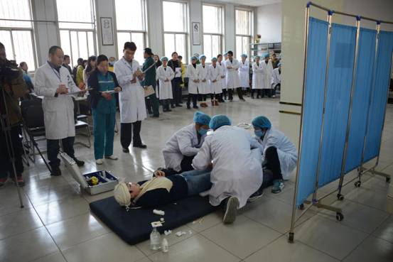 12月18日下午,由河南大学民生学院、河南大学第一附属医院联合主办的首届“医学生临床技能大赛”决赛在河南大学第一附属医院举行。我院院长李文山、党委常务副书记刘道衔、副书记王建国、副院长王天仕,河南大学第一附属医院院长赵志军、副院长张双林、副书记王新春、纪委书记李贵仓等领导出席本次活动。活动由徐国良主持。