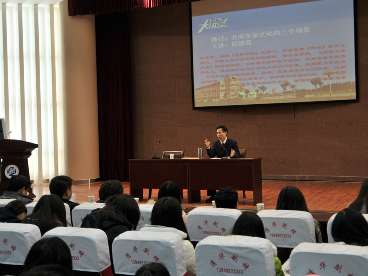12月11日下午,我院艺术楼报告厅座无虚席,掌声雷动。应我院邀请,央视《百家讲坛》主讲人、河南大学历史文化学院教授、博士生导师程遂营教授来到我院民生大讲堂,为师生们作了《北宋东京文化的三个场景》主题讲座。我院院长李文山莅临现场听取了讲座,副院长王天仕主持讲座并介绍了程遂营教授的基本情况。